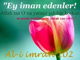 Ey inananlar! Allah'tan, sakınılması gerektiği gibi sakının, sizler ancak müslüman olarak can verin.3/Ali İmran-102